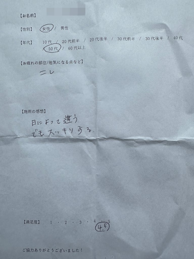 本日は座間市のひばりが丘でご利用くださった50代女性のお客様からいただいた感想を紹介させていただきます!